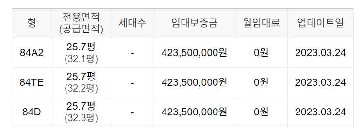 임대보증금 및 월 임대료는 입주자 모집공고일 기준이며, 보증금 최대 전환 시 변동될 수 있습니다.