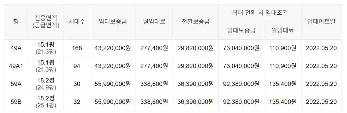 임대보증금 및 월 임대료는 입주자 모집공고일 기준이며, 보증금 최대 전환 시 변동될 수 있습니다.