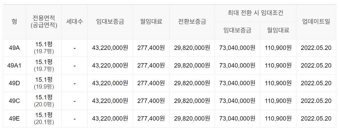 임대보증금 및 월 임대료는 입주자 모집공고일 기준이며, 보증금 최대 전환 시 변동될 수 있습니다.