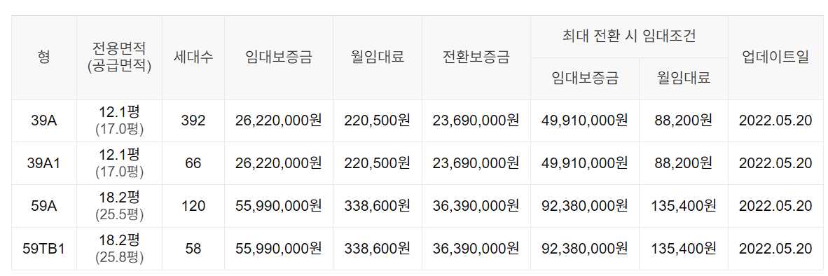 임대보증금 및 월 임대료는 입주자 모집공고일 기준이며, 보증금 최대 전환 시 변동될 수 있습니다.