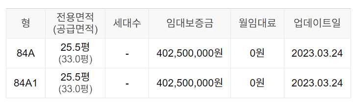 임대보증금 및 월 임대료는 입주자 모집공고일 기준이며, 보증금 최대 전환 시 변동될 수 있습니다.
