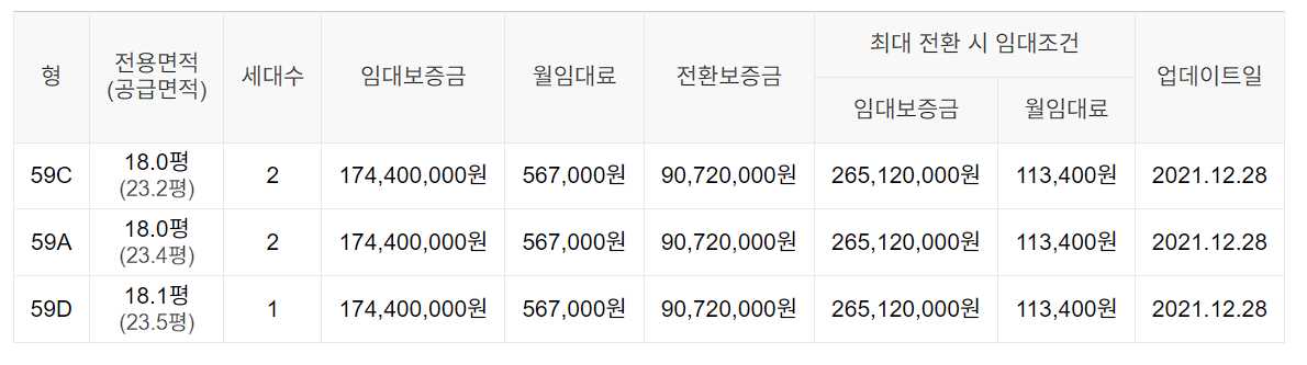 임대보증금 및 월 임대료는 입주자 모집공고일 기준이며, 보증금 최대 전환 시 변동될 수 있습니다.