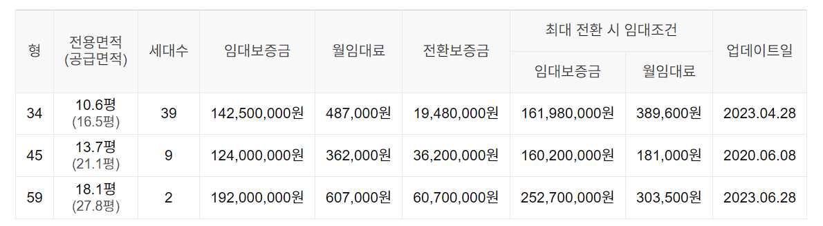 임대보증금 및 월 임대료는 입주자 모집공고일 기준이며, 보증금 최대 전환 시 변동될 수 있습니다.