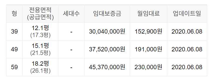 임대보증금 및 월 임대료는 입주자 모집공고일 기준이며, 보증금 최대 전환 시 변동될 수 있습니다.