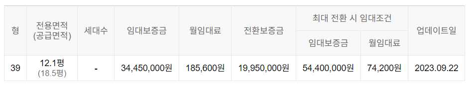 임대보증금 및 월 임대료는 입주자 모집공고일 기준이며, 보증금 최대 전환 시 변동될 수 있습니다.