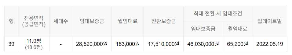 임대보증금 및 월 임대료는 입주자 모집공고일 기준이며, 보증금 최대 전환 시 변동될 수 있습니다.