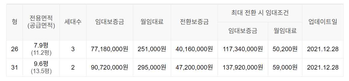 임대보증금 및 월 임대료는 입주자 모집공고일 기준이며, 보증금 최대 전환 시 변동될 수 있습니다.