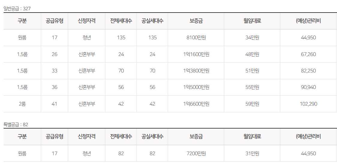 임대보증금 및 월 임대료는 입주자 모집공고일 기준으로 보증금 최대 전환 시 변동될 수 있습니다.