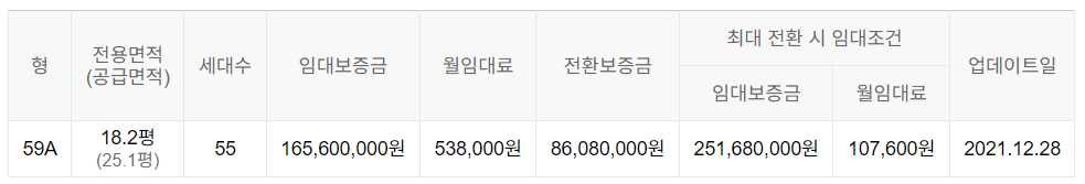 임대보증금 및 월 임대료는 입주자 모집공고일 기준이며, 보증금 최대 전환 시 변동될 수 있습니다.