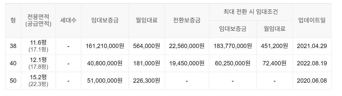 임대보증금 및 월 임대료는 입주자 모집공고일 기준이며, 보증금 최대 전환 시 변동될 수 있습니다.