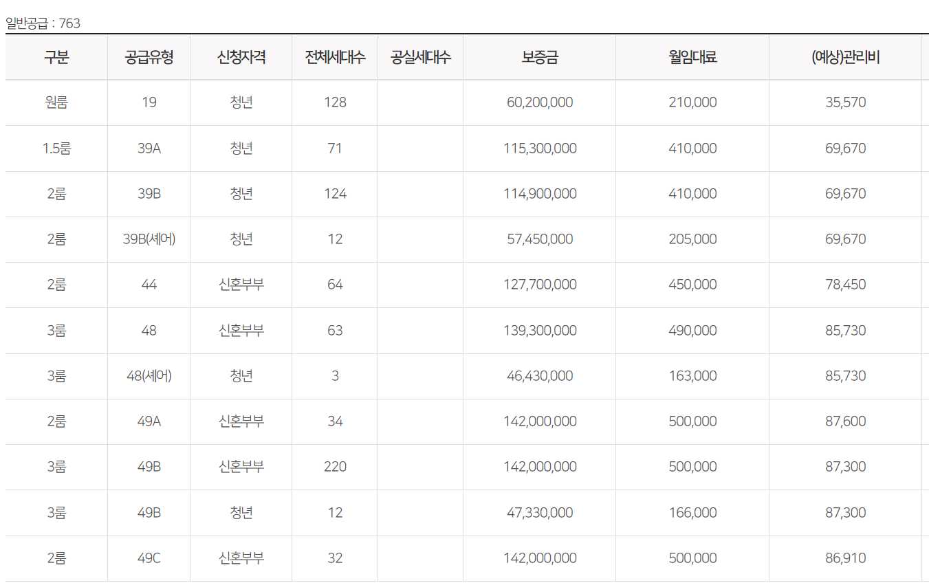 임대보증금 및 월 임대료는 입주자 모집공고일 기준으로 보증금 최대 전환 시 변동될 수 있습니다.