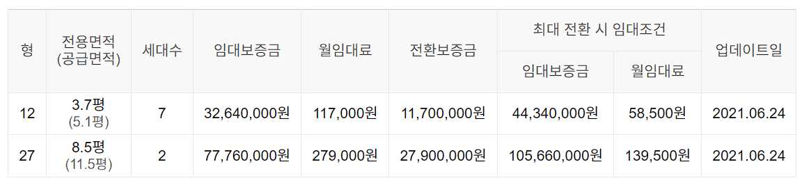 임대보증금 및 월 임대료는 입주자 모집공고일 기준이며, 보증금 최대 전환 시 변동될 수 있습니다.